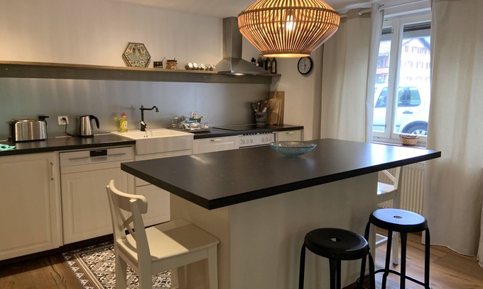 This beautiful apartment is on the ground floor of a traditional chalet. It has a large south facing terrace and an enormous garden, ideal for children and summer BBQ's. It is less than 10 minutes walk from West Train station and about 5 minutes to the city center.