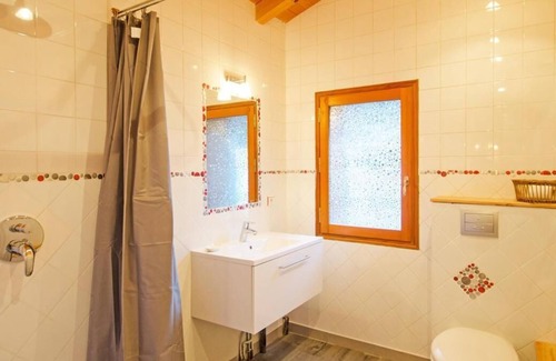 The Chalet d'Alfred is situated in the ski resort of Peisey-Vallandry, in the heart of the village of Nancroix. You will have a wonderful view over the Bellecôte mountain. You could reach the ski area of Les Arcs thanks to a free shuttle (bus stop at 250m). Main shops, restaurants, and ski rental are at Peisey, at 2km from the chalet. Ski Slopes are at 4km. Surface area : about 180 m². Living room with settee. Dining area with fireplace. 2 bedrooms with double bed. Bedroom with 2 twin beds. Bedroom with 2 single beds. Mezzanine with 2 single beds. Open-plan kitchen with special heater to prepare La Raclette, kettle, coffee machine, oven, toaster, dishwasher, microwave, electric mixer, induction cooking rings, fridge. 2 Separated WC. Bathroom with bath-tub, shower, WC. Bathroom with shower. Bathroom with shower, WC. Balcony. washing machine, sauna (ext).