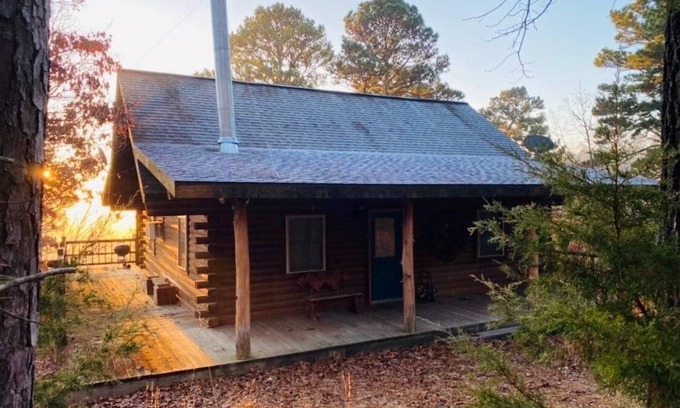 The cabin sits on 6 acres shared with four other cabins, offering ample space for walks. Enjoy the proximity to Lake Leatherwood, just 0.6 miles away, where you can access hiking and mountain biking trails. It's also a short 2-mile trip to Eureka Springs.