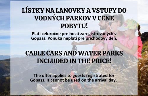 Chalets Jasná Collection features 18 duplex apartments located in Jasná- Záhradky Ski Area and set only few yards from the ski elevators, and 14 duplex apartments located in Jasná – Otupné. Each apartment at Chalets Jasná Collection come with 2 bedrooms, a spacious living room with a fireplace and a fully equipped kitchen. These 80-492 ft² apartments consist of large windows and a terrace offering mountain views. Breakfast can be enjoyed in the apartments and a dinner is served at either Hotel Tri Studničky , Hotel Pošta or Hotel Grand Jasná. A transfer to these hotels is offered at a surcharge. Many apre-ski bars, restaurants, ski and bike rental as well as ski schools can be found in the surroundings.