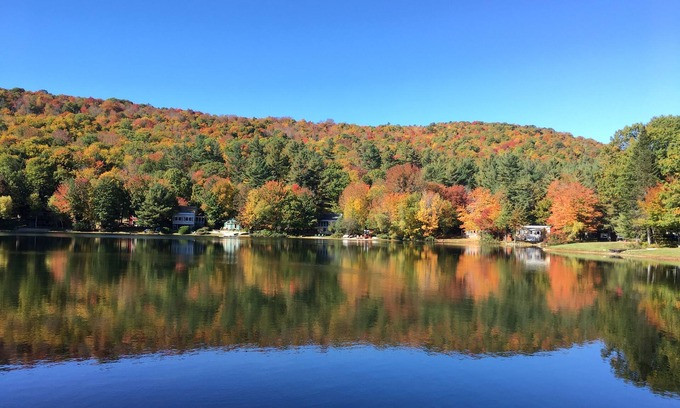 Relax and enjoy the fall foliage from the living room windows or read a book after a long day of hiking. Two bedrooms and a full bath are located on the main level. The master bedroom has a comfy organic queen mattress and a small desk. The second bedroom has a queen bed. High quality bedding and linens are provided throughout the house. The lower level has a 1/2 bath with washer/dryer, large sectional couch with Flat screen TV, and a bedroom containing 4 twin beds (2 bunks). The downstairs also has a large romping/yoga area and ample space for hanging jackets and storing skis, bikes, etc. A pack-n-play is available. Wi-fi provided. Plenty of DVDs and board games are provided for rainy days. Roku is available with wi-fi to connect to Netflix, Amazon Prime and YouTube TV.