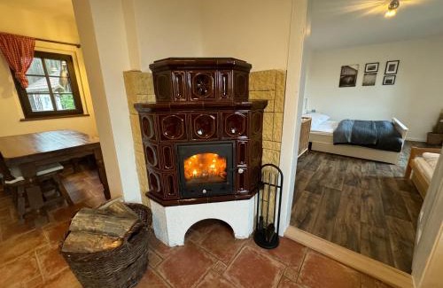 Providing a garden, Chaloupka pod Rabštejnem offers accommodations in Hluboká. This property offers a private pool, free Wifi, and free private parking. Outdoor seating is also available at the vacation home. Offering a terrace with garden views, this vacation home also features a flat-screen TV, a well-equipped kitchen with a dishwasher, an oven, and a microwave, as well as 1 bathroom with a shower and a hair dryer. There's also a seating area and a fireplace. Karlovy Vary International Airport is 25 miles from the property.