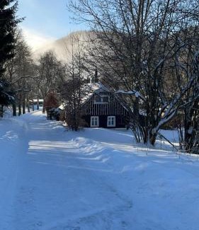 Chaloupka offers accommodations in Žacléř, 24 miles from Wang Church and 25 miles from Bus Stop Strážné. With free private parking, the property is 20 miles from Western City and 23 miles from The Grandmother's Valley. Outdoor seating is also available at the vacation home. The vacation home is composed of 3 separate bedrooms, a living room, a fully equipped kitchen with a dishwasher and oven, and 1 bathroom. A flat-screen TV with satellite channels is provided. The accommodation has a fireplace. Skiing, cycling, and hiking are possible within the area, and Chaloupka offers ski storage space. Pardubice Airport is 55 miles away.