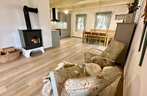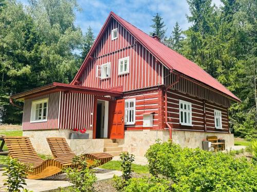 Featuring a shared lounge, Chalupa Janovice offers accommodations in Rudník. 11 miles from Bus Stop Strážné and 26 miles from The Grandmother's Valley, the property features a garden and barbecue facilities. There's an outdoor fireplace and guests can use free Wifi and free private parking. Providing a terrace and mountain views, the spacious vacation home includes 2 bedrooms, a living room, cable flat-screen TV, an equipped kitchen, and 1 bathroom with a shower. Towels and bed linen are provided in the vacation home. There's also a seating area and a fireplace. For guests with children, the vacation home provides both an indoor and outdoor play area. Ski storage space is available on-site, and both skiing and cycling can be enjoyed close to Chalupa Janovice. Pardubice Airport is 53 miles away.