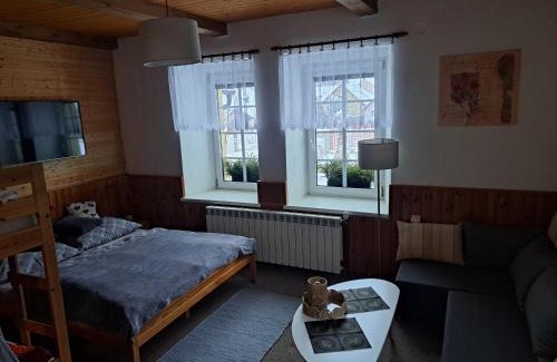 Featuring barbecue facilities, chalupa Loučná nad Desnou provides accommodations in Loučná nad Desnou. This property offers a saltwater pool and free private parking. On clear days, guests can head outside to enjoy the apartment's outdoor fireplace or simply kick back and relax. With free Wifi, this 2-bedroom apartment features a flat-screen TV and a kitchen with an oven and microwave. The unit at the property features a walk-in shower and a dressing room. For added privacy, the accommodation features a private entrance. You can play billiards, table tennis and darts at the apartment, and the area is popular for skiing and cycling. Chalupa Loučná nad Desnou has both a sun terrace and garden where you can relax, along with ski storage space. Museum of Paper Velké Losiny is 4.3 miles from the accommodation, while Praděd is 12 miles from the property. Pardubice Airport is 77 miles away.