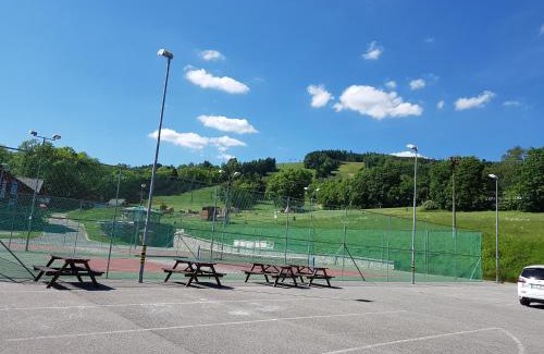 Chalupa Mates Černý důl provides a sauna and free private parking, and is within 11 miles of Bus Stop Strážné and 26 miles of The Grandmother's Valley. This chalet features ski-to-door access, a garden, as well as a tennis court. The pool features a fence and mountain views. With free Wifi, this 3-bedroom chalet offers a satellite flat-screen TV, a washing machine, and a fully equipped kitchen with a dishwasher and oven. The unit at the property features a shower and a dressing room. There's also a seating area and a fireplace. A mini-market is available at the chalet. Guests at the chalet can enjoy skiing and cycling nearby, or make the most of the sun terrace. Western City is 28 miles from Chalupa Mates Černý důl. Pardubice Airport is 53 miles from the property.