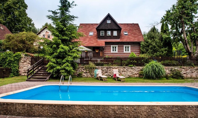 Chalupa nad Popelkou offers accommodations in Lomnice nad Popelkou, 20 miles from Bus Stop Strážné. With pool views, this accommodation features a swimming pool. There's an outdoor fireplace and guests have access to free Wifi, free private parking, and an electric vehicle charging station. This vacation home includes 3 bedrooms, a living room and a TV, an equipped kitchen with a dining area, and 3 bathrooms with a shower and a washing machine. Towels and bed linen are available in the vacation home. There's also a seating area and a fireplace. For those times when you'd rather not eat out, you can cook on the barbecue. Outdoor play equipment is also available at the vacation home, while guests can also relax in the garden. Pardubice Airport is 51 miles from the property.