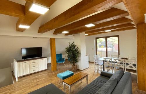 Providing free bikes, Chalupa pod Tatrami features accommodations in Liptovská Teplička. This property offers access to a balcony, a pool table, free private parking, and free Wifi. The accommodation provides a 24-hour front desk, a shared kitchen, and luggage storage for guests. Offering a terrace and mountain views, the spacious vacation home includes 3 bedrooms, a living room, flat-screen TV, an equipped kitchen, and 3 bathrooms with a bath and a shower. Towels and bed linen are featured in the vacation home. This vacation home is allergy-free and non-smoking. A mini-market is available at the vacation home. For guests with children, the vacation home offers kids pool, an indoor play area, and outdoor play equipment. Skiing and cycling can be enjoyed nearby, while a ski equipment rental service, ski-to-door access and a ski pass sales point, are also available on-site. Strbske Pleso is 18 miles from Chalupa pod Tatrami, while Dobsinska Ice Cave is 25 miles away. Poprad-Tatry Airport is 20 miles from the property.