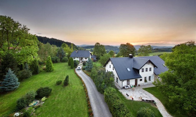 Chalupa Sněženka offers accommodations in Nýrsko, 21 miles from Drachenhöhle Museum. This country house features free bikes, a garden, as well as barbecue facilities. There's an outdoor fireplace and guests can use free Wifi and free private parking. Featuring a terrace with mountain views, this country house also includes a flat-screen TV, a well-equipped kitchen with an oven, a microwave, and a toaster, as well as 1 bathroom with a bidet. For added privacy, the accommodation features a private entrance. Sightseeing tours are available within easy reach. If you like to discover the area, skiing, cycling and hiking are possible in the surroundings and the country house can arrange a car rental service. Ceske Budejovice Airport is 75 miles from the property.
