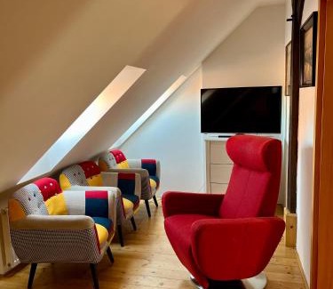 20 miles from St. Procopius Basilica in Mohelno, Chalupa Vale features accommodations with access to a sauna, hot tub, and spa facilities. This property offers access to table tennis and darts. Guests can use a garden. Featuring a terrace and garden views, the spacious villa includes 4 bedrooms, 2 living rooms, flat-screen TV, an equipped kitchen, and 2 bathrooms with a hot tub and a shower. Towels and bed linen are available in the villa. There's also a seating area and a fireplace. For guests with children, the villa offers both an indoor and outdoor play area. Trade Fairs Brno is 25 miles from Chalupa Vale, while Špilberk Castle is 27 miles from the property. Brno-Turany Airport is 29 miles away.