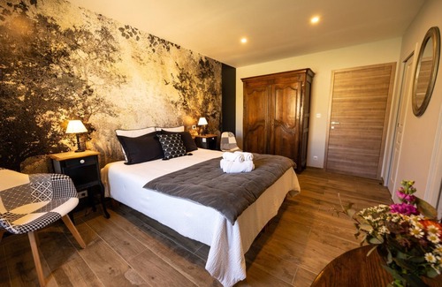 Chambre d'hôtes Le Rucher des Combes - Black Périgord room is located in Fleurac. Chambre d'hôtes Le Rucher des Combes - Black Périgord room provides accommodation, featuring Designated Smoking Area, Bedding/Linens, Wellness Facilities, among other amenities. This Bed & Breakfast features Designated Smoking Area, Bedding/Linens, Wellness Facilities, to make your stay a comfortable one.