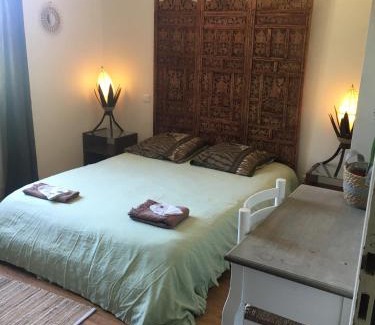 Chambre d'hôtes Sous Les Grands Chênes NOMADE enjoys a location in Saint-Étienne-de-Corcoué, 20 miles from Le Lieu Unique and 21 miles from Bouffay Area. This property offers access to a terrace and free private parking. Guests can enjoy garden views. At the bed and breakfast, units are equipped with a wardrobe. There's also a fridge, kitchenware, and a kettle. At the bed and breakfast, the units come with bed linen and towels. Botanical Garden of Nantes is 21 miles from the bed and breakfast, while Castle of the Dukes of Brittany is 21 miles away. Nantes Atlantique Airport is 18 miles from the property.