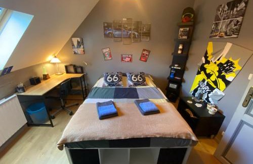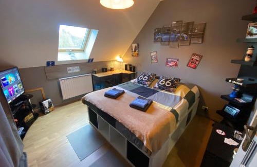 Offering a garden, Chambre la Belle Étape provides accommodations in Le Vaudoué. This property offers access to a terrace and free private parking. Fontainebleau Golf Club is 10 miles from the homestay and Cely Golf Course is 10 miles away. With free Wifi, this homestay offers a satellite flat-screen TV, and a fully equipped kitchenette with a microwave and fridge. Guests can enjoy a meal on an outdoor dining area while overlooking the garden views. The accommodation is non-smoking. Château de Fontainebleau is 12 miles from the homestay, while Belesbat Golf is 9.5 miles away. Paris - Orly Airport is 32 miles from the property.