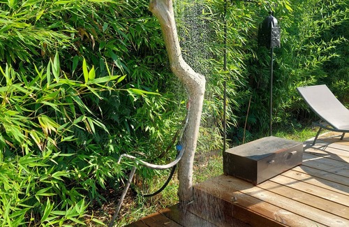 While you're here, you can enjoy all the comforts of home and more, including a pool and WiFi, as well as an outdoor shower and a garden. Other amenities include towels, table tennis, soap, and toilet paper.