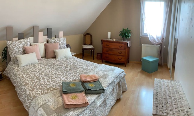 A 1h30 de Paris, vous profiterez d’un calme reposant au premier étage d’une maison individuelle.