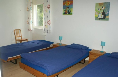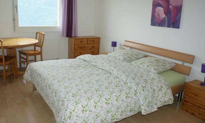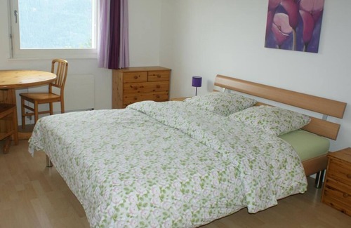 5 minutes from the cable cars and near the centre, modern apartment house. Apartment with 4 ½ rooms for max 10 people, about 84m2, 5th floor with elevator, nice, light and sunny, very nice view, including:Entrance hall with built-in wardrobe1 separate WC1 bedrooms with 3 single beds1 bedroom with 2 single beds and a sofa bed1 bedroom with double bed 160cm1 bathroom with bathtubOpen kitchen, well-equipped (fridge, gas cooker, oven, dishwasher, coffee machine, fettle, microwave, etc.)Living room with sofa bed, television with flat screen, dining cornerBalcony1 walk-in storage room on the landing with fridge-freezerSki room1 parking place outside (in front of building A)Laundry with washing machine and tumble-dryer (level 3)Non-smoking apartment -- Included in basic price:Electricity and heating1 outside parking lotExtra charges (obligatory):Cleaning package: CHF 270.-. (A supplement shall be charged in the case of excess)Tourist Tax: CHF 3.80 per adult/night, CHF 1.90 per child/night, CHF 1.90 per Senior/nightArrival outside opening hours/day: between CHF 50 and CHF 100Deposit: CHF 300.- blocked on a credit card at the arrival. The amount will be release 14 days after the departure.To bringBath towels --