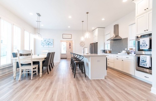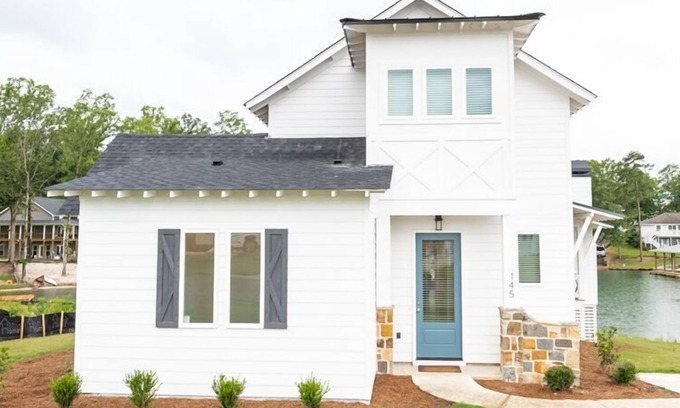 Discover the beauty of Lake Martin's serene lake lifestyle at The Point in Holiday Shores. No detail has been overlooked to make your stay memorable! This cottage-style home boasts plush accommodations, beautiful furnishings and is well suited for groups of all sizes.Entertaining is a breeze with its fully equipped kitchen which is both functional and beautiful. There is plenty of room for gathering at the giant island while meals are prepared as the open floor plan allows for easy sight into the living area and lake views. The primary bedroom suite with king size bed and walk-in shower is located on the first floor along with a half bath and the laundry room. Upstairs are 3 additional bedrooms all with queen size beds - one room with its own bathroom. A loft space with built-in bunk beds offers 4 more twin size beds. A hall bath completes the upstairs! Outside a covered porch with bed swing, fireplace and Traeger grill with pellets makes for the perfect place to watch the sunrise or sunset. Enjoy direct waterfront and pull your boat up to the large dock with stairs for swimming! Centrally located near all Lake Martin's hot spots! The owner has made it extra child friendly with all the things needed to travel with kids of all ages - children’s toys, lake toys, pack n’ play & changing pad, innertube, fishing poles, gymnastic tumbling mat and more! And for the bigger kids: poker table for 10, inflatable movie screen & projector, popcorn maker, paddleboard, floating island, and more! While we don’t recommend it - if you must work while you are at the lake, there is a desk equipped with 2 computer screens, ready to for your laptop to connect! No pets allowed. No smoking allowed. 2 car driveway limit. No street parking - overflow lot only.