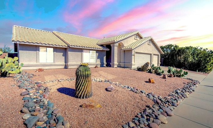 Welcome to Chapala Court, a cozy 3BD/2BA home in Sahuarita. This spacious 1,735 sq ft retreat features a private hot tub, a wood-burning fire pit, and free off-street parking. Enjoy modern comforts like a full kitchen, central AC, and fast WiFi. Conveniently located near local dining, parks, and outdoor activities. After a day of exploring, relax by the fire or soak in the hot tub. The perfect getaway for your Arizona stay!