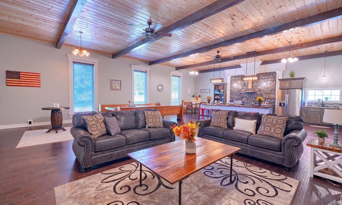Full Kitchen, Large Gathering Room, Large Hot Tub and Picnic Table & 1,000 Sq.Ft Deck. Plus, a Fire Pit area with plenty of seating and more!