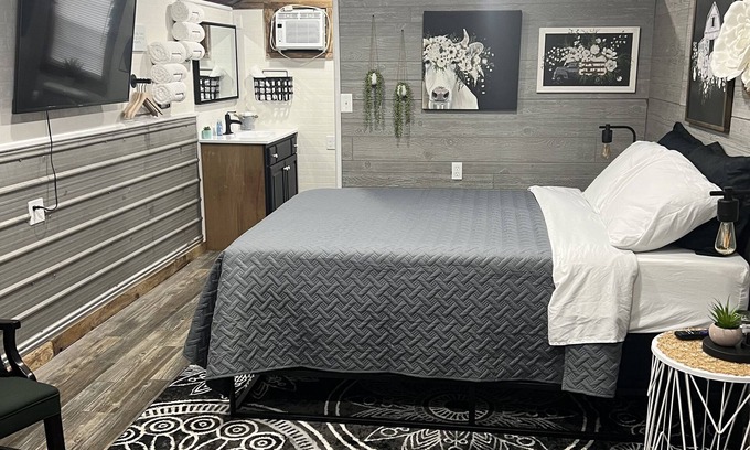 20 minutes from Mammoth Cave, our tiny guest home is filled with everything you would need. From large Tv, High Speed Internet, comfortable queen bed with high quality linens, to luxury towels. We tried to think of everything and are on property should you need anything. Units are solar powered so that you never have to worry about electricity. Only 4 miles from Barren River/Port Oliver Boat Ramp which has park amenities including walking trail. We provide outside seating and fire pit. We are only 22 minutes from Bowling Green and 12 minutes from Scottsville.