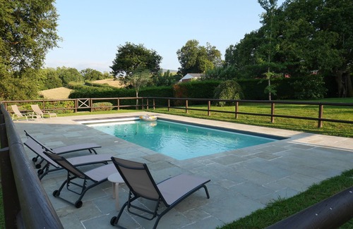 This traditional Basque house was originally built as a sheepfold in the early 17th century. The house, set in 1 hectare of land, has evolved into a very pleasant holiday home, in absolute peace and quiet, without being isolated. The bus stop is a 15-minute walk from the house, taking you to the village (5 minutes) or St Jean de Luz (30 minutes). In a dominant position, with a 360° view of the surrounding countryside, including the Rhune. No noise or other nuisance.