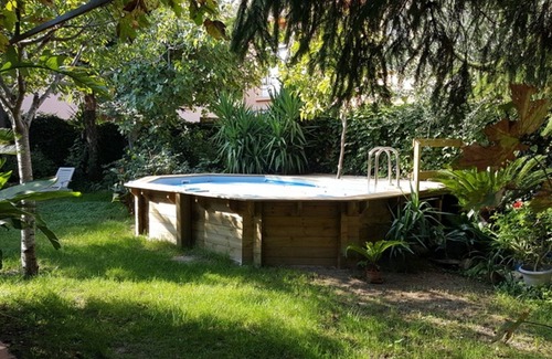 House 160 m2, on 2 levels on the ground floor. we find a large entrance, bathroom, wc the living room of 65m2 (kitchen sam living room) the 1st floor there are 3 bedrooms (8 sleeping) an enclosed garden of 250 adjoining with terrace, above ground pool (diam. 4m) in front of the house 2 shaded parking lots.