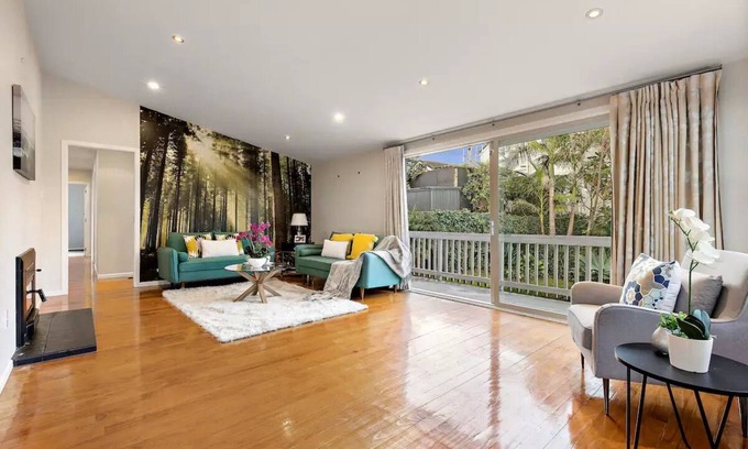 This amazing character home is positioned right next to the Park, provides the perfect place for your park side dream retreat with family and friends. The spacious home is in stylish decor surrounded by the nature. Sitting proudly elevated, you can enjoy beautiful views out over the park while relax in the pool or Jacuzzi. Enjoy the duck pond, playground or the sports field in the reserve.