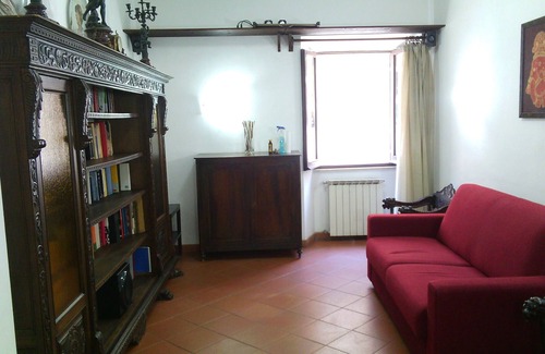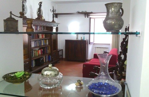 The apartment is at the second floor (third floor for Americans) of a typical historical building in Rione Monti. It is composed by: kitchen, dining room, living room, bedroom, bathroom and a small terrace for smokers. The kitchen is full equipped, with oven, microwave, washing machine, big fridge and refrigerator, cooking machine with beater and mixer, dishes, pans, pots, etc. The dining room has a large wooden table with six chairs (more chairs are available in the house) and a big wall closet. The living room is furnished with a big wooden bookcase and a comfortable double sofa/bed. The bedroom is spacious and has a big double bed, bedside tables and a wooden desk with two chairs. The bathroom is close to the bedroom and has bidet and shower. In the antechamber of the bedroom there is a big wardrobe with drawers and crutches which is completely empty, ready for the use of guests.