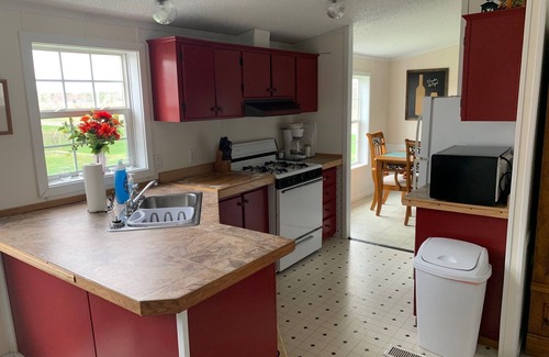 This is a 3 bedroom, 2 bath home with a sitting room off the master bedroom that also has a queen size couch bed. There is a living room, dining room & eat in kitchen. This home is fully equipped for your stay, including dishes, glassware, silverware, cookware, toaster, coffee maker, and microwave. Pillows, blankets and linens are provided and beds are freshly made prior to your arrival. Guests need only to bring personal hygiene items. The home overlooks Thousand Islands Winery's picturesque vineyards, so you will enjoy unobstructed views of the St. Lawrence River and Thousand Islands Bridge during your stay. A private and spacious back deck with grill is a perfect place to enjoy all that surrounds you. A sizable paved parking area allows two cars. There is also plenty of parking available for boat trailers.