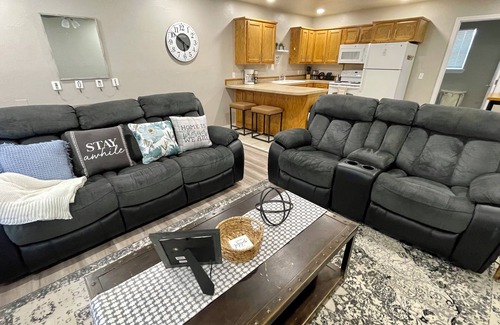 This duplex has 2 bedrooms and 1 bathroom. Duplex is located in a safe and peaceful neighborhood. Both bedrooms have queen beds. Bathroom is located in-between bedrooms. Central Heat and Air. All utilities available with wifi and two free parking spaces. Absolutely no wasted space in this simple design.
