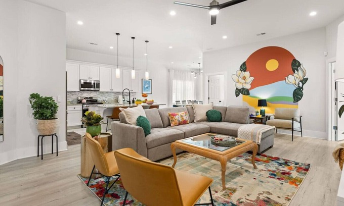 Come relax and play in Charleston at this one-of-a-kind experience at the Rainbow Oaks House! Beautifully inspired by Rainbow Row of downtown Charleston, this vibrant and unique home offers 5 themed bedrooms, 3 full bathrooms, an elite chef`s kitchen and plenty of space both inside and outside for your entire group!