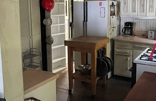 The kitchen is extremely well-stocked with dishes, utensils, pans, pots, and has a work area which overlooks the lake. There is a dishwasher and a gas grille for BBQ (outside).