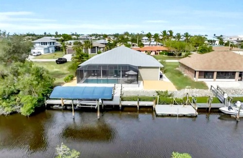 Enjoy sun-filled days and serene sunsets at this peaceful Bokeelia retreat on the canal. Relax by the saltwater pool with mangrove views for privacy and tranquility, located on a quiet cul-de-sac. The three spacious bedrooms, all with smart TVs, include two open to the patio. The open-concept home seamlessly connects to the patio, and the fully stocked kitchen is perfect for a wonderful family or romantic dinner. Plus, take a quick ride out to the open water to wherever you decide.