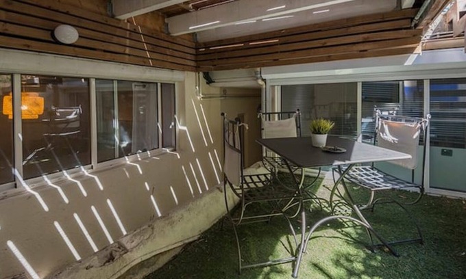 Relax on the deck or patio (enjoy the outdoor furniture!) of this apartment. For a change of scenery, come inside and enjoy the WiFi.