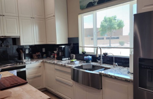 Escape to this tranquil 1-bdrm, detached casita with attached 1 car garage and EV charger, in Queen Creek. Make yourself at home in this excellent retreat featuring an open concept with 10 ft ceilings. In your bedroom is a comfy king bed and blackout shade. With a fully stocked kitchen, you can cook a gourmet meal. Starter supplies of laundry detergent , soaps and paper products provided. We hope you'll enjoy your stay. Located within 3 miles from eateries, grocery store, and entertainment. 7 miles to Mesa gateway airport and Arizona Athletic grounds. Your casita is separate from the main home on an acre of land. You won’t be disappointed! Only 30 day+ stays. Lease and background check required prior to arrival.