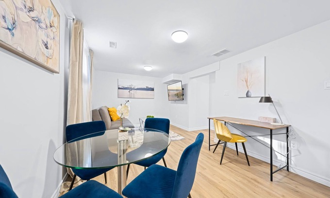 Enjoy the stay at this adorable basement with a separate entrance & free parking. Centrally located steps away from grocery stores, coffee shops, restaurants, and liquor stores. A short drive away from hwy 400, downtown Barrie, Go Stations, and Costco. Office desk for those who work from home. This peaceful 1-bedroom basement comes with a queen size bed and a pull-out sofa. Clean sheets and towels. Complete with fast wifi and smart TV with Netflix.