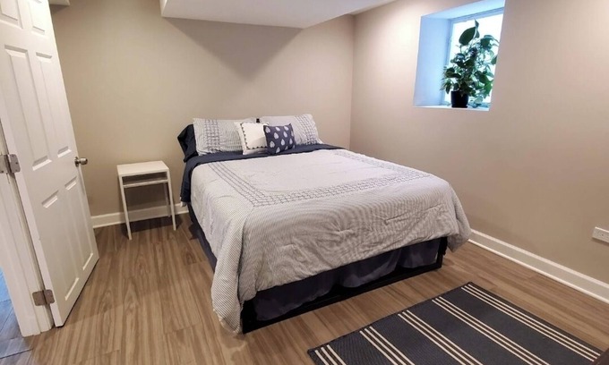 Make yourself at home in this enchanting 1-bedroom Berwyn retreat. This cozy apartment features a peaceful queen bed in the bedroom and a welcoming futon in the living room. Enjoy the convenience of amenities like heating, WiFi, and a washing machine during your stay. The bathroom offers a refreshing shower, and there's even AC to keep you comfortable. We're happy to assist with any questions while you stay at our apartment.