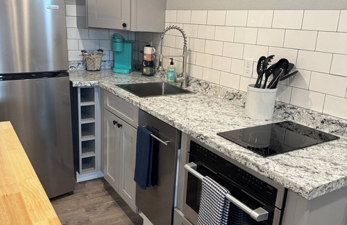 Get ready to relax in this 1-bedroom with office, basement apartment in popular Castle Rock, Colorado. This pleasant retreat features a cozy queen bed, a convenient washing machine, and kitchenette with full-size fridge, convection oven/microwave and many other amenities. Close to I-25 for quick access to the Denver Metro area or Colorado Springs.