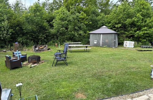 Get ready to relax in this 1-bedroom cabin in Geneva. Nestled in a peaceful setting, this serene retreat offers a cozy escape for guests. We our off grid the cabins do have a toilet in them . We also have a portable Jon !! This beautiful cabin provides all the essentials for a comfortable stay. Book now and enjoy everything this cabin has to offer. We are in the process of building shower house we do have temporary shower camp bags that hang inside shower house for your privacy!! We have battery fans and solar for your lighting and charging for phones.