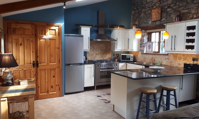 Quaint & Cozy in Killarney at The Priory - Relax under exposed beam ceilings. An Tigin is one-level, 1 bedroom with a queen-size bed, 1 bathroom, an open plan cottage with an inviting sitting room/kitchen. Built brand new in 2007. The kitchen is fully equipped and there is also a washer/dryer. Perfect for a couple for a weeks get-a-way.