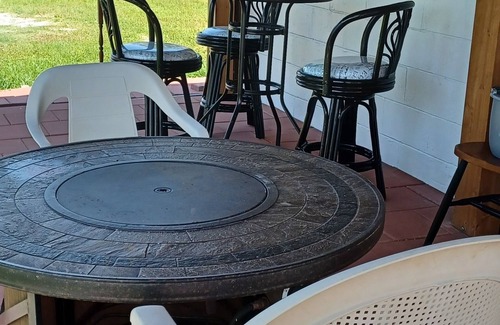 Welcome to this charming cottage in Punta Gorda. This 2-acre property features a cottage with 1 cozy queen-bed bedroom, a lovely living room with a Queen sofa bed, and a modern bathroom with a shower and bidet. Enjoy the cool AC, Wi-Fi, grill, fire table, bon-fire pit and convenient washer, dryer on-site during your stay. Only 2.5 miles to Punta Gorda Airport, 1.5 miles to Exciting Downtown Nightlife, Restaurants or Parks. Local Marina's Offer Charter fishing, sightseeing, and sunset Tiki cruises. Popular Fisherman Village shopping and restaurants just 2 miles away, and 3 miles over the bridge to the new Sunseeker resort. For all your Beach Vibes visit Boca Grande 30 miles away, Englewood 27 miles away, and Famous Fort Myers beaches 38 miles away. For your pleasure many entertainment opportunities exist from 5 minutes to 140 miles to theme parks, eco-tours, botanical gardens, zoo's etc. American Legion members can enjoy in the Back Yard a Tiki Bar, Entertainment, and Dinning (D.N. McQueen Post 103). Just Immerse yourself in the relaxing surroundings and make unforgettable memories. Feel free to reach out to us during your stay - we're happy to suggest local spots to check out.