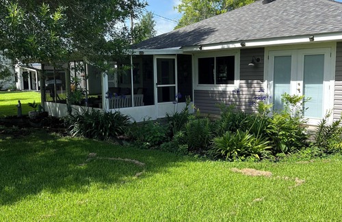 This charming cottage in Patterson is a delightful retreat for guests. With a cozy bedroom featuring a queen bed, a fully equipped kitchen, and modern amenities like WiFi and AC, this pleasant getaway on the Lower Atchafalaya River and it has everything you need for a relaxing stay. The peaceful surroundings and beautiful decor make it the perfect spot to unwind and enjoy some quality time. We are conveniently located one hour from Baton Rouge and New Orleans, if you feel the need for a night out on the town. Pet friendly. We look forward to welcoming you to our place.