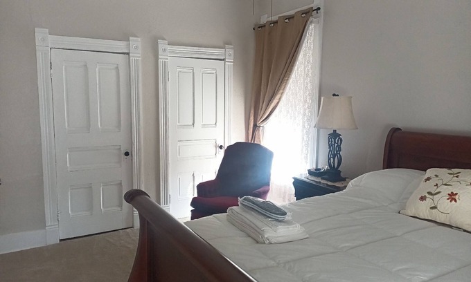 Nestled in Quincy, this delightful historic mansion features 1 bedroom with a cozy queen bed and 2 bathrooms equipped with showers. Guests can enjoy amenities like heating, WiFi, and AC with shared spaces and full kitchen during their stay. Experience what Quincy has to offer with a stay at our enchanting house.
