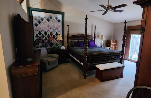 This listing is for the ENTIRE HOME. No other guests or the owner will be present. Sleeps up to 8 with 2 private bedrooms and 2 full baths. A master suite with a jacuzzi tub, a guest wing with a full bath, and access to all other living spaces. The house can certainly sleep more people (up to 12) with additional beds, futons, and couches. Text or call to discuss having more guests stay.