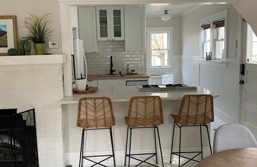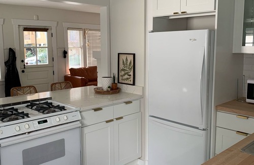 This century old home sits just one block from the historical Beach Drive - Alki Beach! We just finished renovating the kitchen in February 2020! Not only close to the beach but close to coffee shops, many restaurants, and a fun park with play structure and tennis courts. With a short drive or water taxi to downtown Seattle, this home is the perfect vacation stay for a family or 2 couples. No need for a car on this vacation if you want to explore the city by bike and by water. The West Seattle Water Taxi is 2.5 miles down the boardwalk. The main floor has a queen sized bed and full bath while the downstairs has a king bed, and a 3/4 bath with shower. There's also a single bed in a nook perfect for a child/young teen. Alki Beach is a very popular Seattle destination. *There is not designated parking for this home. It's first come, first serve, street parking.
