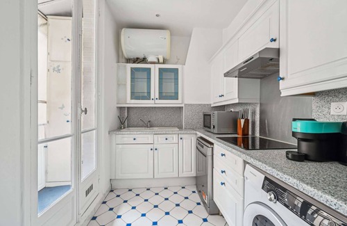 Enjoy staying in the heart of Paris’ Eiffel Tower area with this charming 1-bedroom, 55 square meters apartment located on the 4th floor of a secure residential building with an elevator. Self check-in starting from 3:00PM by picking up keys at a nearby shop. Wi-Fi is available, great for both work and leisure. Refundable damage deposit is required, in full accordance with platform's policies.