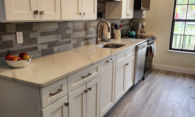 Located in Port St. Lucie, this superb 1st floor villa is a dream. With 2 bedrooms includes a queen bed, full bed, and bunk beds. Newly renovated kitchen and 2 bathrooms This adorable rental is perfect for guests. The living room even has a cozy sofa bed for extra space. Garage, washer & dryer. The facility has a community pool, club house and minutes from the beaches, golf and shopping. Kickback, relax, and enjoy everything Port St. Lucie and what our villa has to offer.