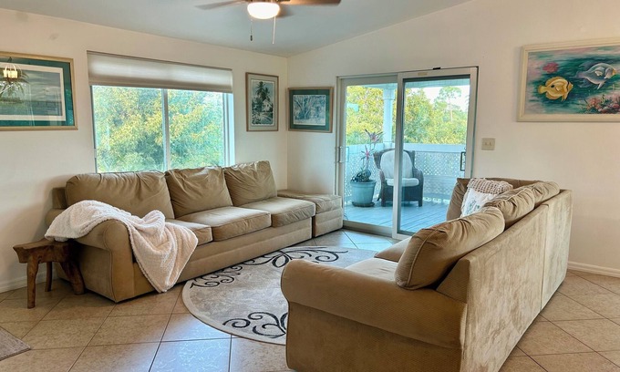 Discover the beauty of Big Pine Key from this delightful 2-bedroom house. With a king bed and a queen bed, guests can relax in comfort. Enjoy the convenience of WiFi, AC, and a washing machine during your stay. The 2 bathrooms are equipped with all of the conveniences of home. Located between the Back Bay and the Ocean. Property sits on an acre lot, enjoy the breezy, shady side porch or the blazing sun on the rear porch while cooking on the Traeger Grill. Modern conveniences close by. Grocery store, lots of Eateries The Famous No Name Restaurant, Forks & Stixs, Boardwalk, Jolly Mon. Bahia Honda just a short ride, The Seven Mile Bridge, The Blue Hole, Horseshoe, Big Pine Key Park, Ramrod Fishing Hole, The Jumping Bridge, Boat Ramps and Key Deer in the yard. Key West, Fort Zachary Taylor, Mallory Square Sunsets only 30 miles away. There is also a RV spot for rent on the property if you bring your RV to accommodate more guests. The Florida Keys 42 Bridges connecting 40 Islands. Paradise
