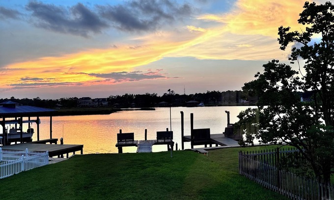 Escape to this fabulous waterfront home in picturesque Gulfport. This welcoming property features 2 bedrooms with a king and 2 queen beds, a sectional with a is pull out queen bed. Two large bathrooms which includes a garden tub. This property is 5 minutes to the beach. Located on bayou bernard and includes a private dock for your boat. This property is located minutes from the Mississippi Aquarium which features dolphins, penguins and sharks . Some of the many nearby attractions include the award winning Lynn Meadows Discovery center for children, the worlds largest model train museum.Your also minutes away from a boat ride to historic Fort Massachusetts on Ship Island. And a short trip down Highway 90 to Beauvoir the historic last home of Jeff Davis and the world renowned Ohr Museum. Also, a beachfront ride on Highway 90 with the longest manmade beach will take you to the Coast Casinos and excellent seafood restaurants. Please note this property has cameras located on the outside of the building.