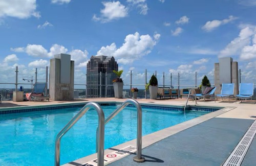 Yes, this Downtown apartment has a swimming pool. Check the Facility Overview section for details about the pool and other available facilities.